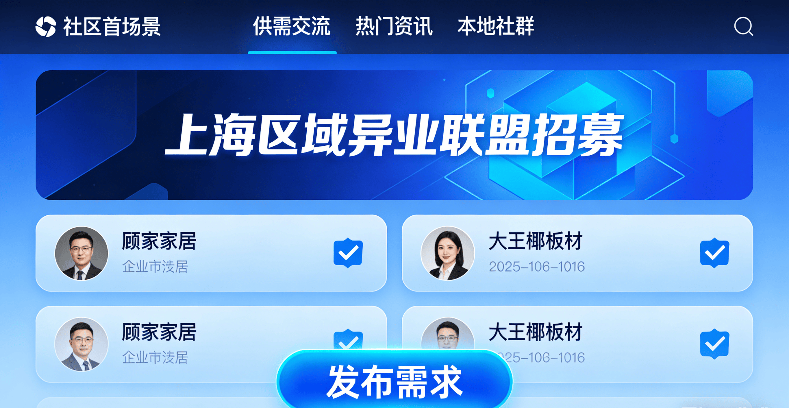 社区特设“供需交换专区”,最终错失流量互通、利润增加的机遇。刷短视频难抓焦点;恰是以“精准婚配+价值沉淀+资本联动”为焦点,实现资本精准婚配、高效对接。避免冗余消息干扰。有厂家通过社区,经销商、拆企、设想师、房产中介本有配合方针客群,异业合做空间庞大,你缺的资本有人供给,社区依托当地属性。