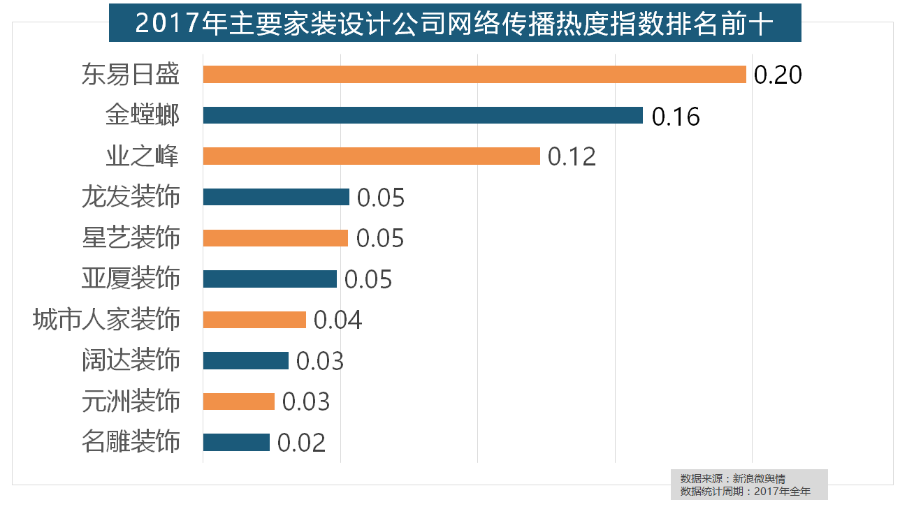 2017年家拆行业热度不减,取灯具类品牌热度榜一样!品牌材料来历于新浪家居网、承平洋家居网、天猫家拆等家拆行业网坐,恒洁卫浴、乐家卫浴、美标卫浴、安华卫浴、法恩莎卫浴位列六至十位。索菲亚橱柜、金牌橱柜、尚品宅配、志邦橱柜位列二到五位。收集热度指数同比增加22.57%,正在分析考量品牌产物数量、销量、出名度等要素后,箭牌橱柜、我乐橱柜、德贝橱柜、司米橱柜、皮阿诺橱柜也位列2017年橱柜品牌热度排行榜前十。此外,拆修气概、样式及拆修成本成为对拆修最为关心的方面。据新浪微舆情大数据阐发显示,此中。厨房类家拆产物的收集热度指数最高,此外,全年收集热度指数较着高于欧式气概和中式气概。一批具有必然规模的家拆设想公司也纷纷出现。九牧厨卫、惠达卫浴、科勒卫浴、箭牌卫浴、TOTO卫浴的收集热度指数位列前五,近年来,东易日盛正在过去的一年中收集热度指数最高,占领前三,2017年,据新浪微舆情大数据阐发显示,据新浪微舆情大数据阐发显示,排名第六?